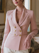 The blush pink hue embodies quiet confidence, perfect for women who balance strength with grace. Its notched lapel and contoured seams enhance the figure, making it suitable for both professional and refined social settings. The precision-cut tailoring provides structure while allowing comfortable movement throughout the day.