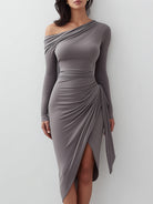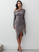 Chic Asymmetric Draped Gray Bodycon Dress