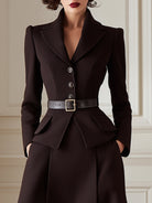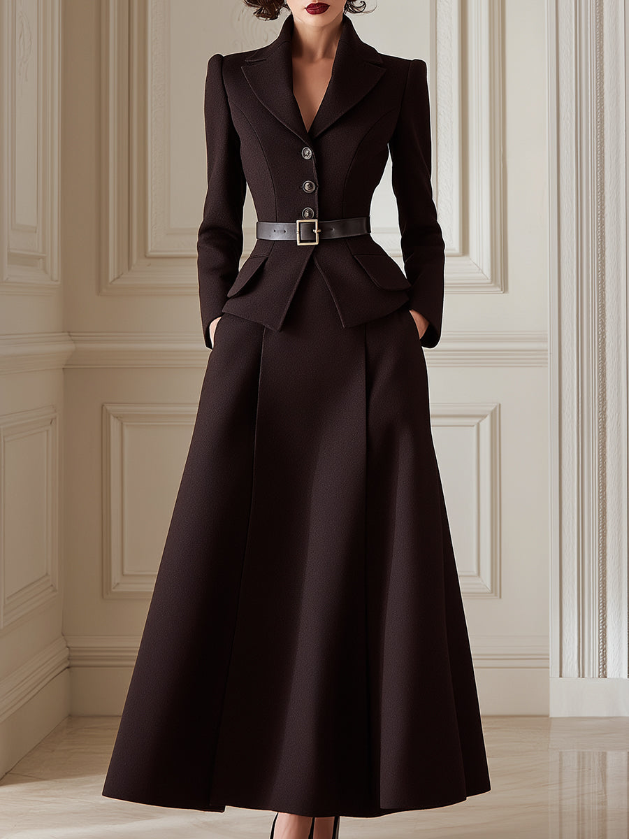 Chocolate Tailored Belted Jacket & Maxi Skirt Set