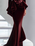 Crovaya Bordeaux Bloom Velvet Peplum Gown