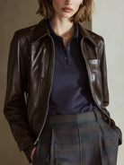 Crovaya Dark Coffee Zip-Front Leather Jacket