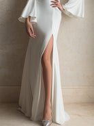 Crovaya Ivory Grace Flared-Sleeve Gown