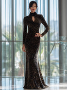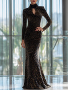 Long fitted sleeves elongate the arms, while the tailored design enhances curves for a powerful, feminine presence. Perfect for black-tie evenings, gala dinners, or upscale social events, this gown exudes confidence and charisma. Pair with bold earrings and sleek heels to complete the look.