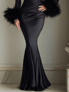 Cut in a mermaid silhouette, the skirt flares gracefully to the floor, ensuring captivating movement with every step. Ideal for autumn and winter evening affairs, this gown delivers modern allure with couture-inspired detailing.