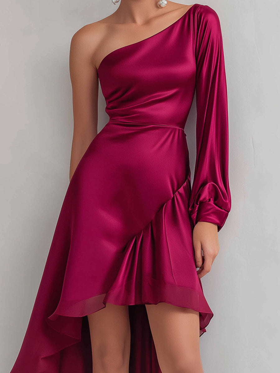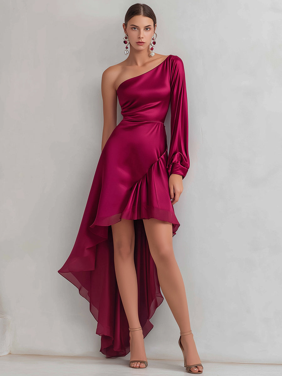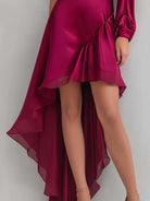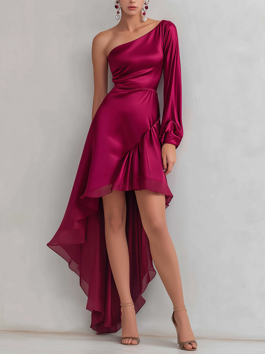 Crovaya unveils the Scarlet Cascade High-Low Gown, a bold and contemporary design created for women who command attention. Rendered in a vibrant scarlet hue, the gown features a one-shoulder neckline with a long draped sleeve, creating a harmonious balance of drama and refinement. Its high-low hemline adds playful dynamism, offering both the elegance of a gown and the movement of a cocktail dress.