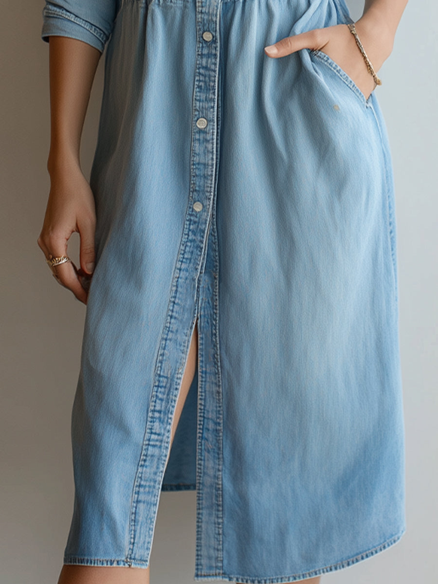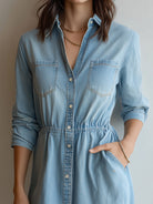 Perfect for everything from weekend brunch to casual workdays, this shirt dress embodies Crovaya‘ chic yet comfortable aesthetic. Pair it with sneakers for a fresh, daytime look or elevate it with heels and statement jewelry for evening events. Its timeless design and soft denim fabric make it a wardrobe staple for every season.