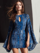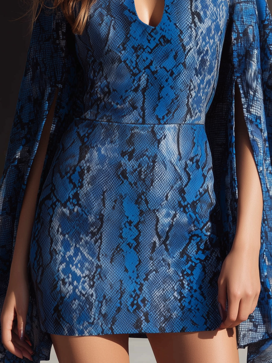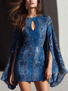 Keyhole Cape-Sleeve Snake Print Mini Dress