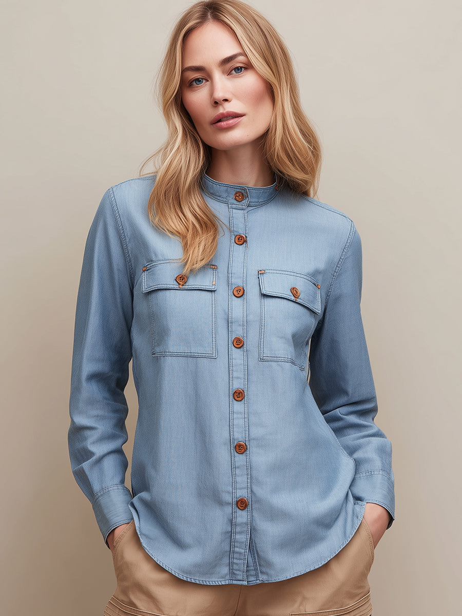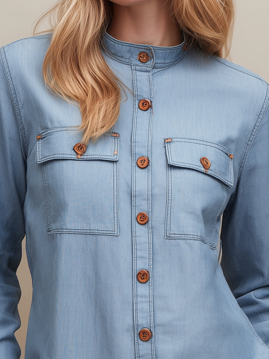 Light Blue Utility-Inspired Denim Shirt