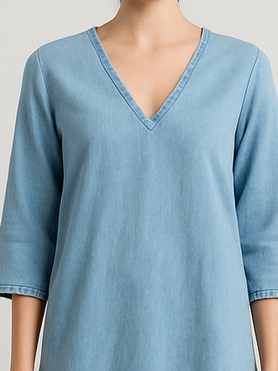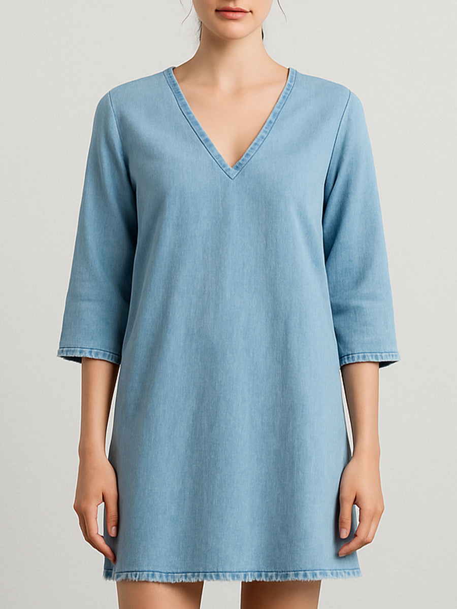 Minimalist V-Neck Denim Shift Dress