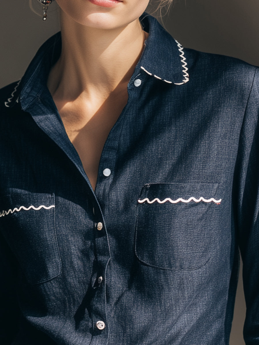 Navy Trim Detail Button-Up Shirt