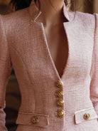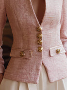 Elegant, timeless, and effortlessly chic — the Rose Tweed Gold-Button Structured Blazer captures the spirit of classic femininity reimagined for the modern era. Crafted from premium tweed fabric, it features a delicately textured weave in a rose hue that radiates warmth and sophistication. The tailored cut emphasizes the waist, while gold-tone buttons bring a luxurious accent to the front placket and flap pockets