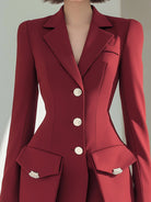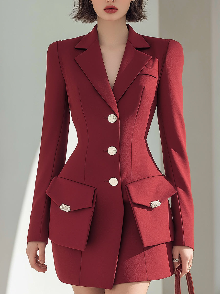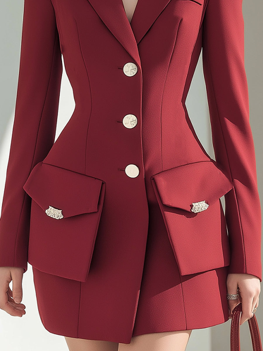 Tailored Red Blazer Dress With Crystal-Embellished Pockets