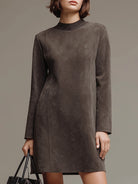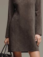Taupe Suede Long-Sleeve Mini Dress