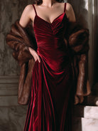 Crovaya introduces the Velvet Crimson Evening Gown with Luxe Fur Shawl, a masterpiece designed for women who seek to embody timeless elegance with a touch of opulence. Crafted from rich crimson velvet, the gown captures the essence of luxury, offering a tactile softness that glimmers with understated radiance under evening lights.
