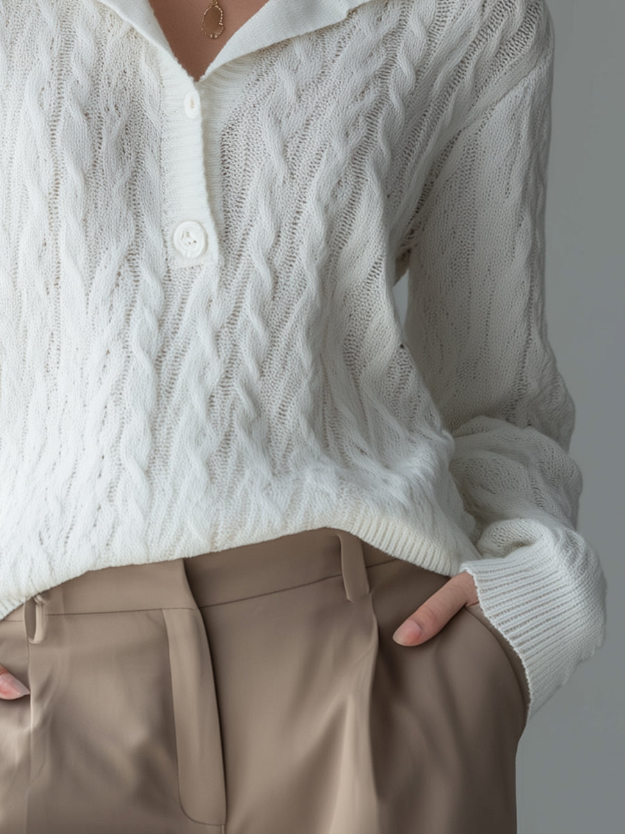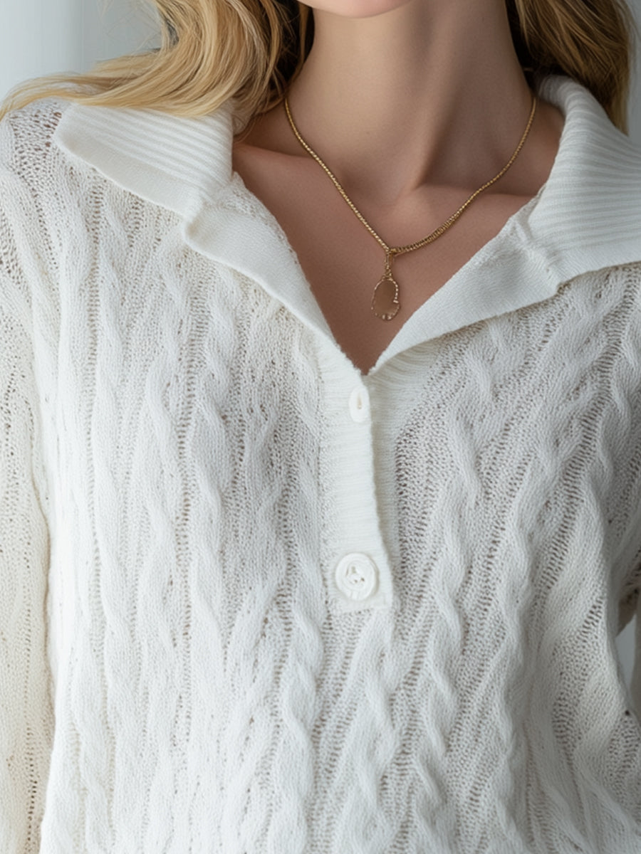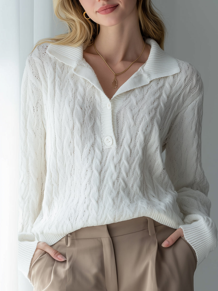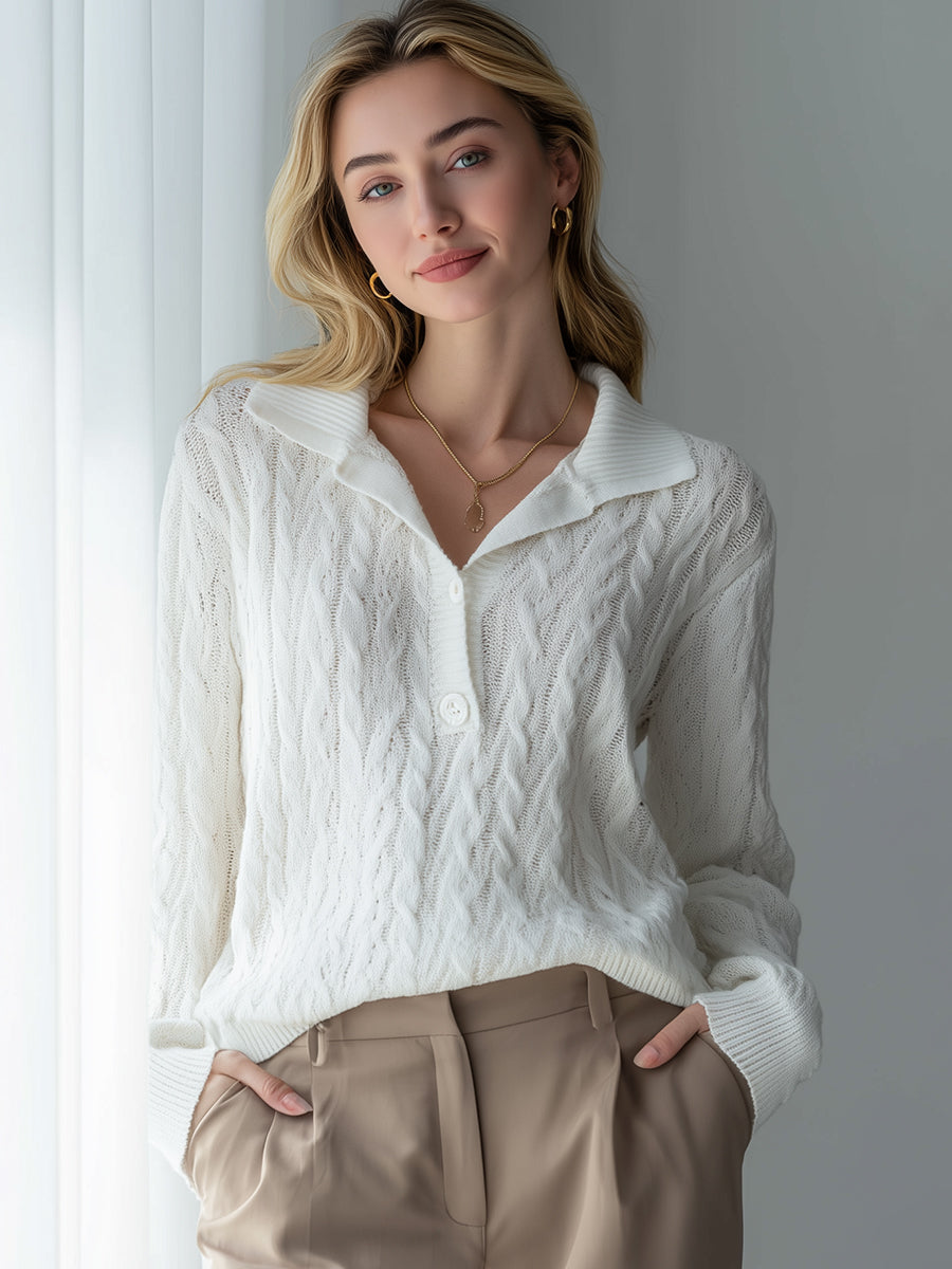 Luxurious White Knit Polo Sweater