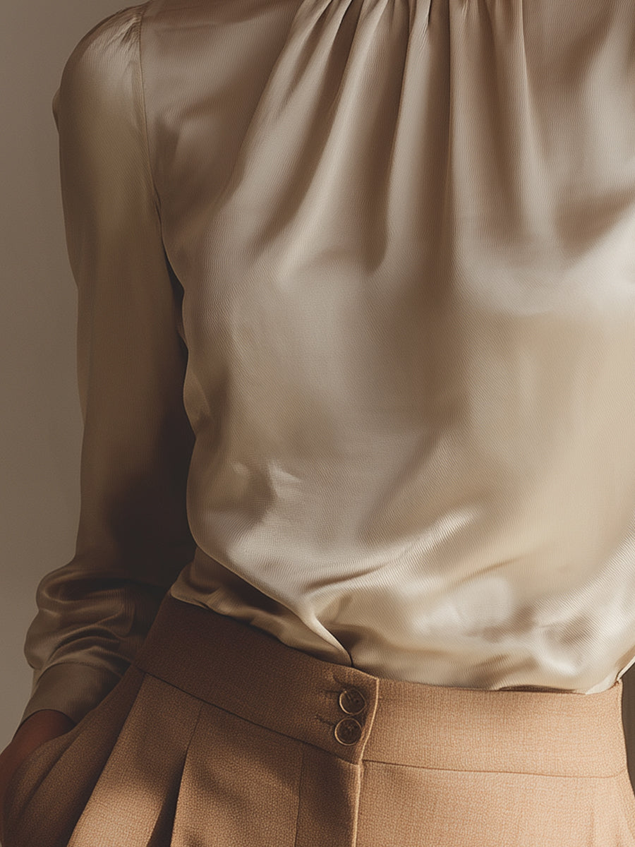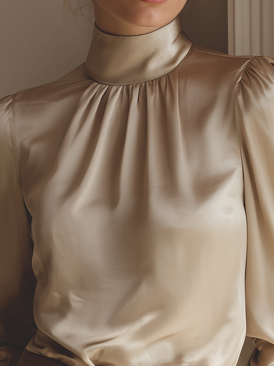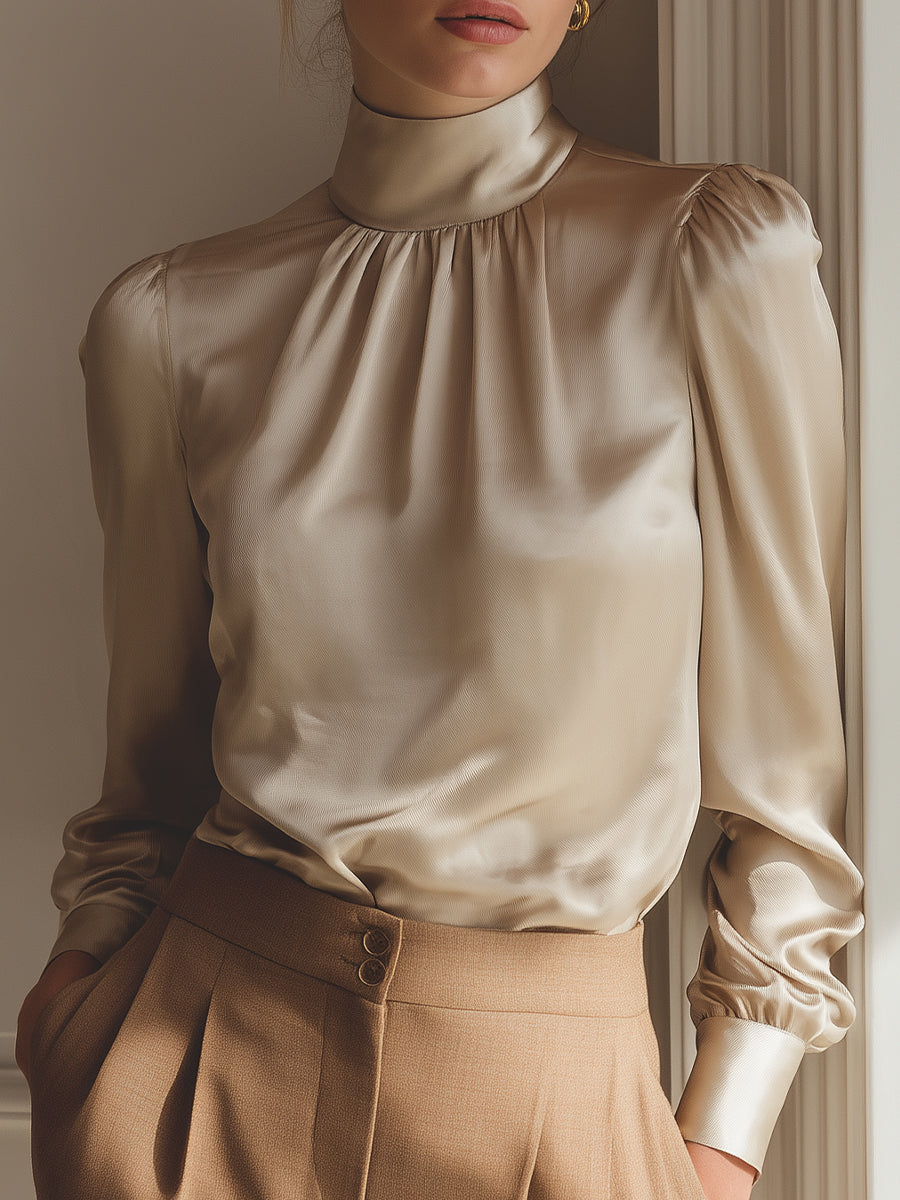 Elegant Silk Satin High-Neck Blouse