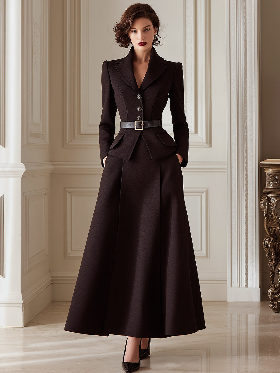 Chocolate Tailored Belted Jacket & Maxi Skirt Set