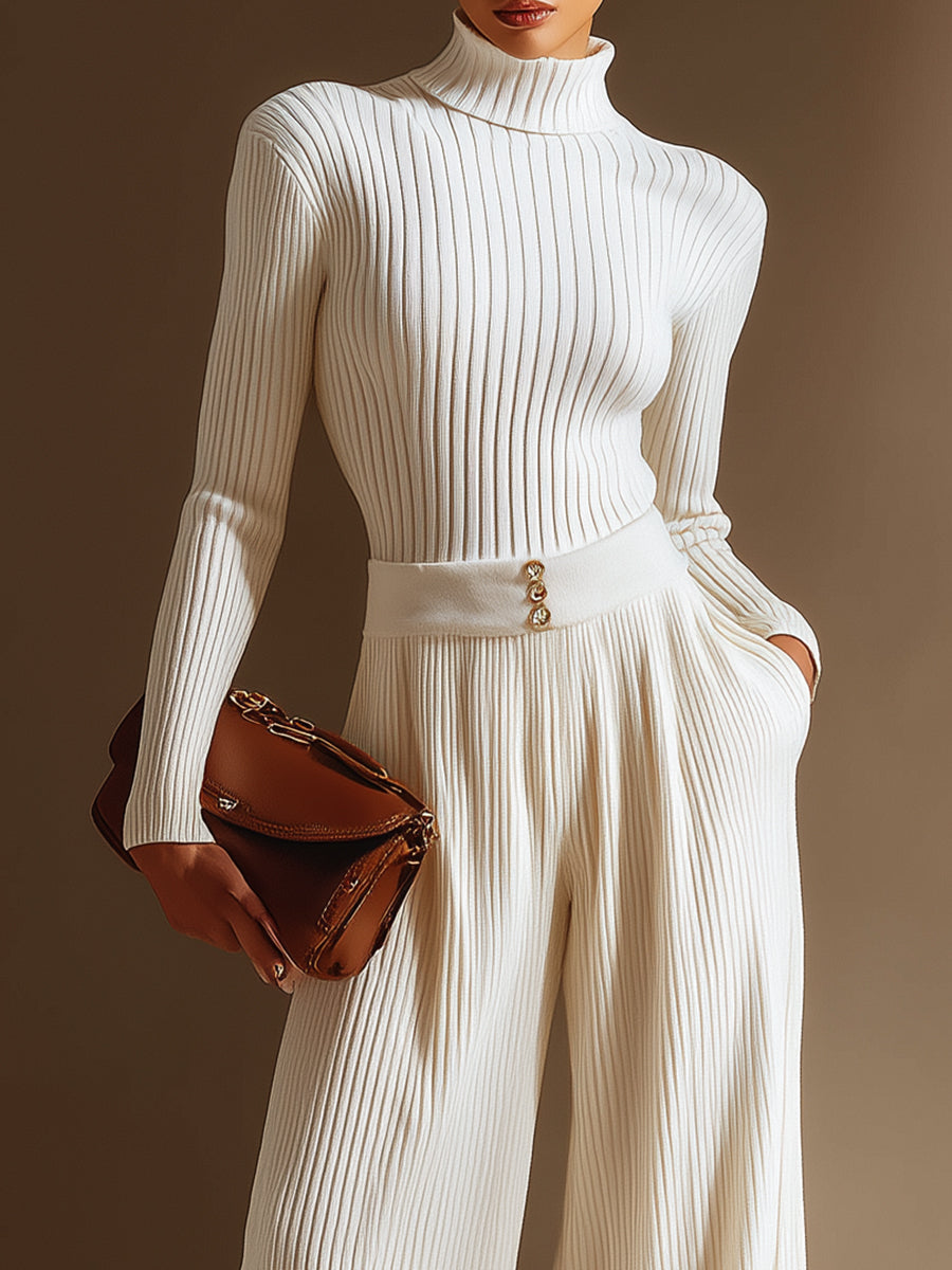 Ivory Ribbed Knit Two-Piece Set