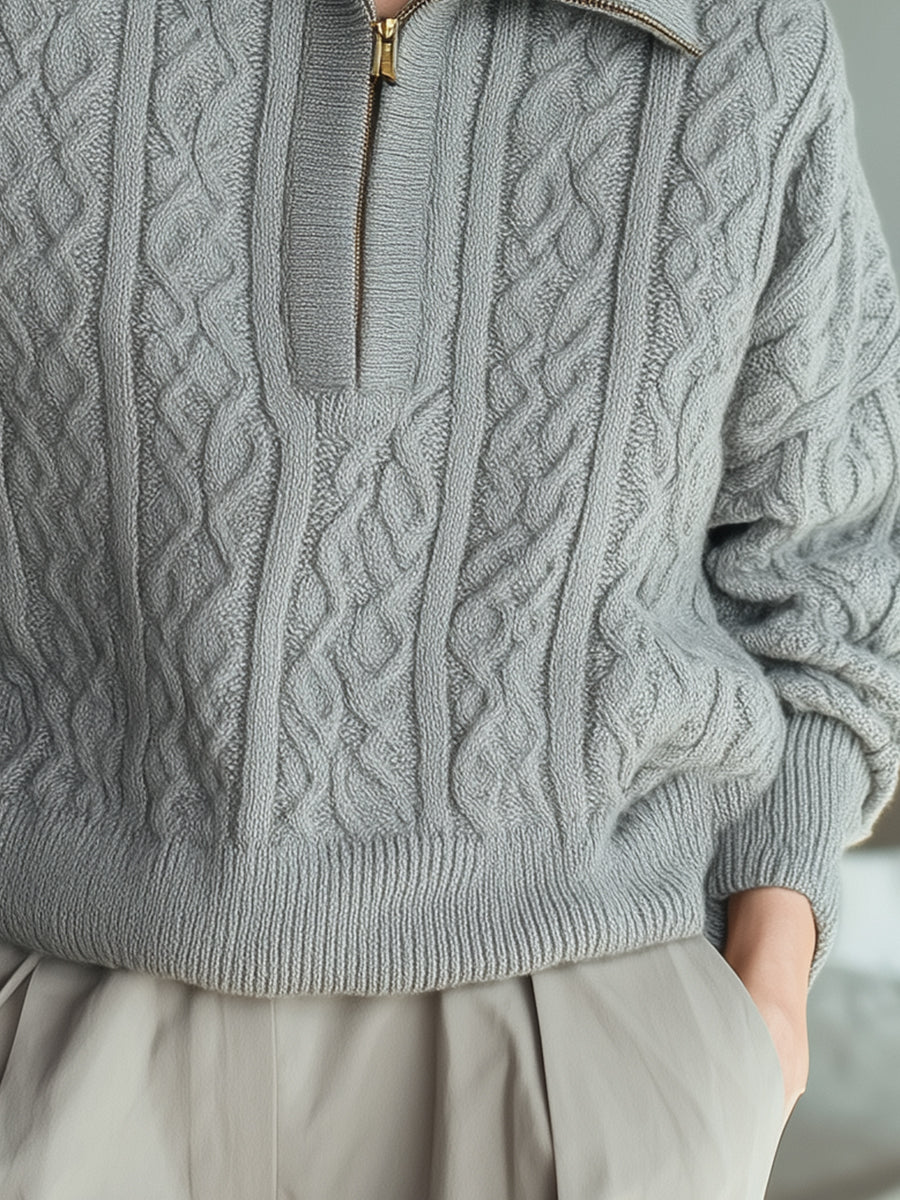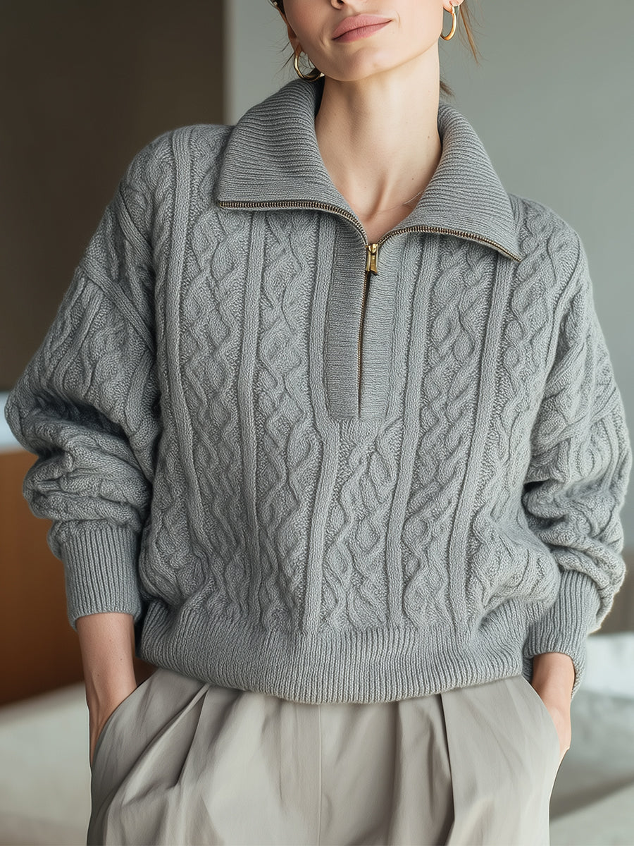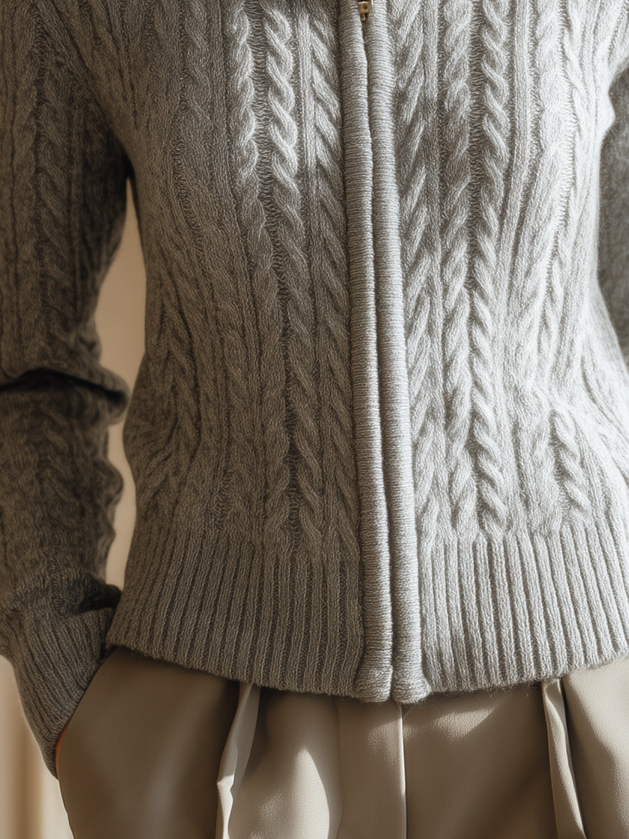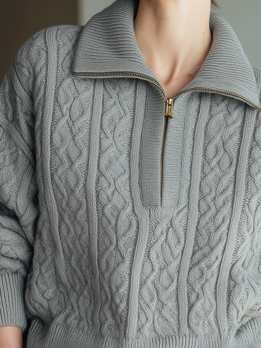 Camel Cable-Knit Half-Zip Sweater And Mini Skirt Set