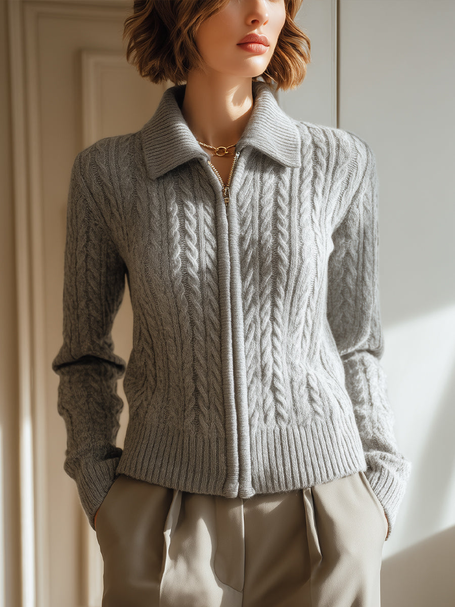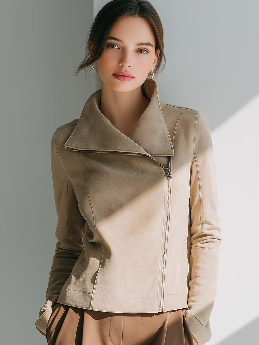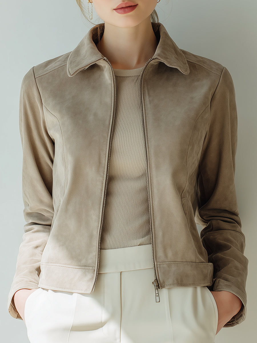 Luxurious Suede Zip-Up Jacket In Soft Taupe
