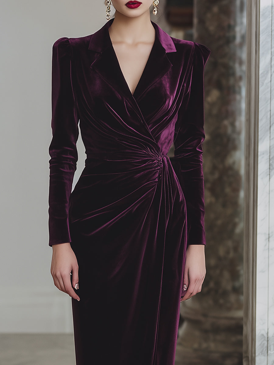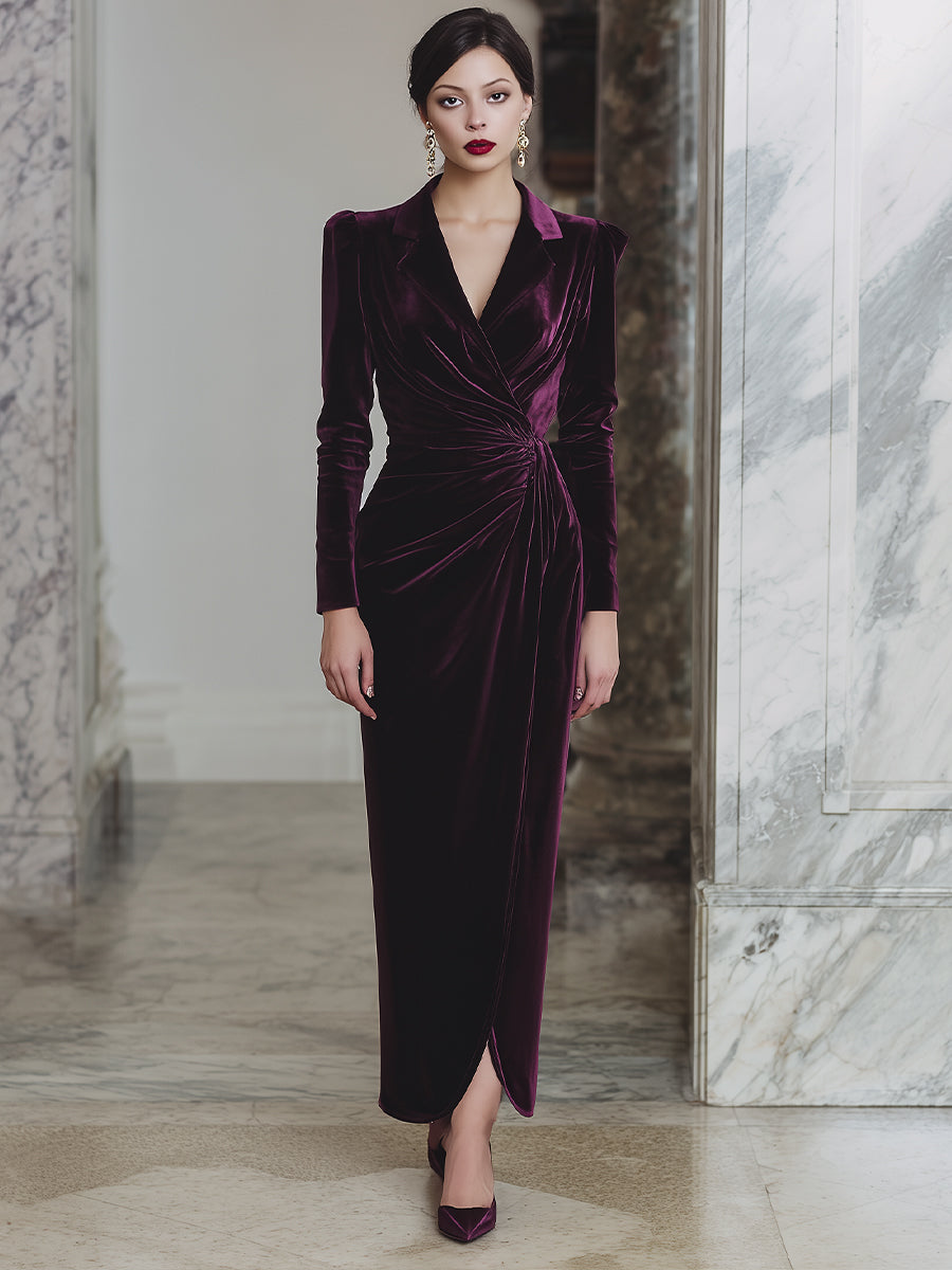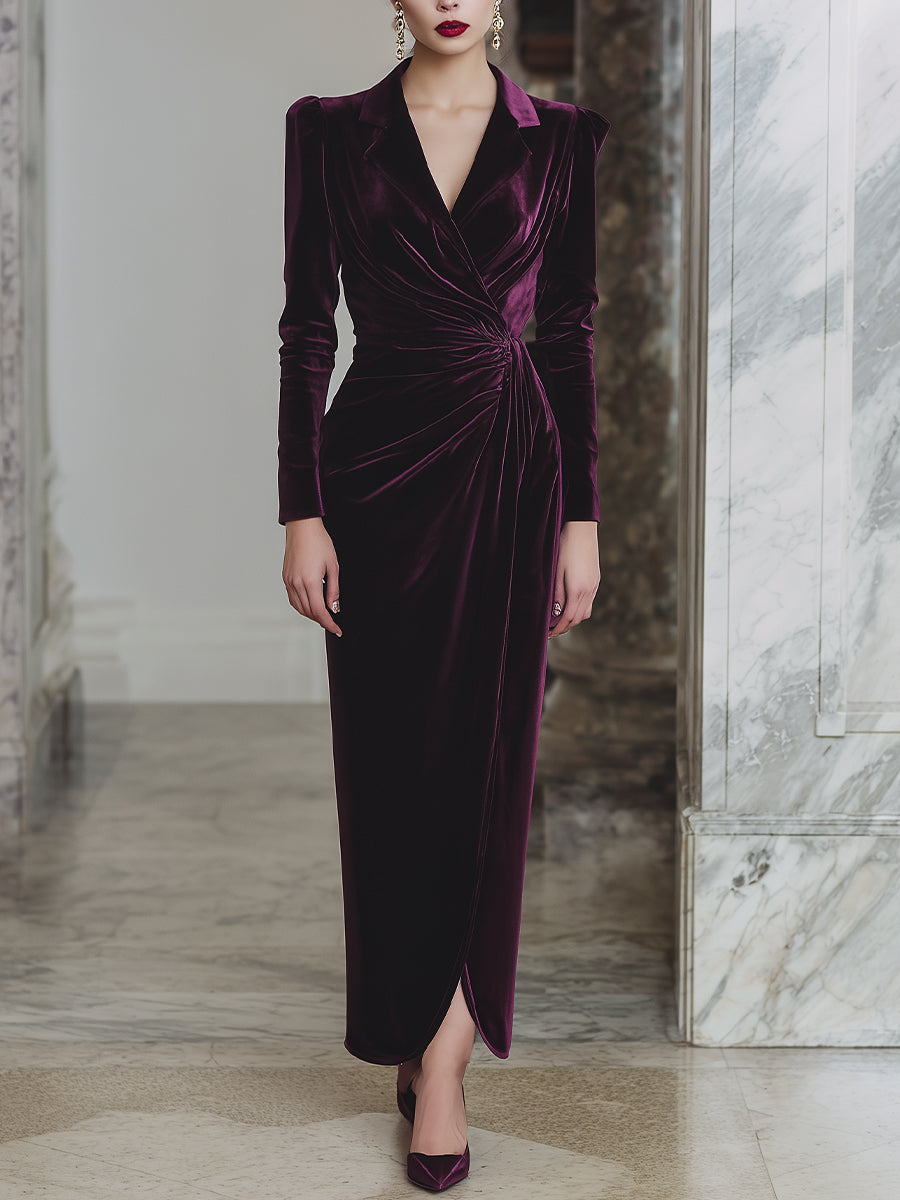 Structured Velvet Blazer-Inspired Gown In Deep Plum