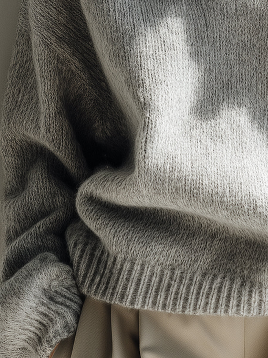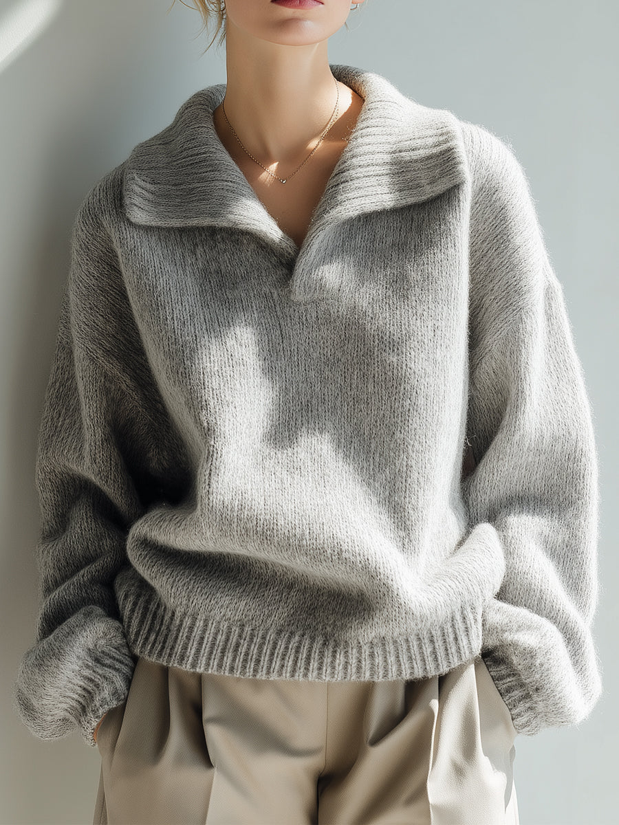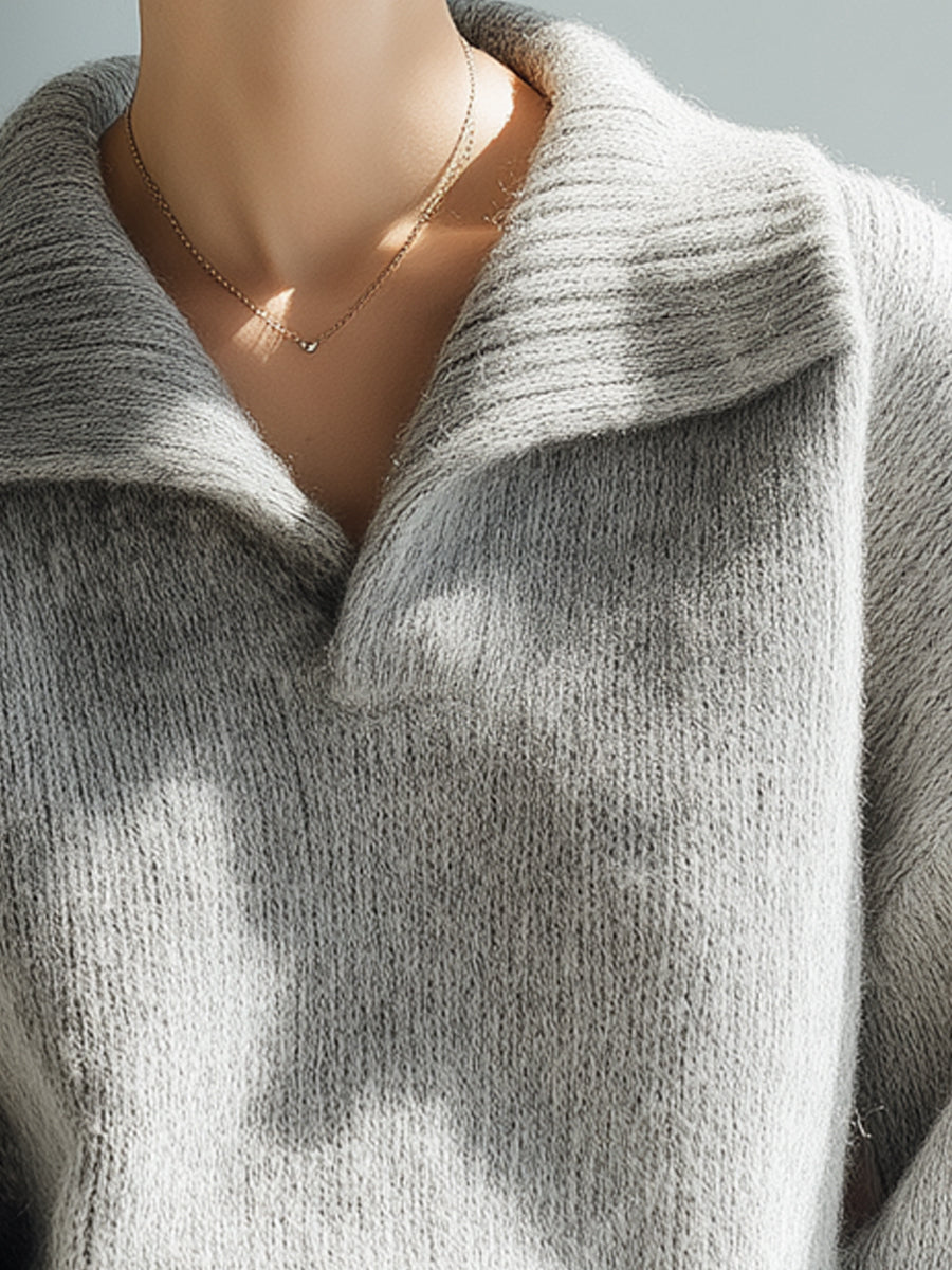 Grey Relaxed Collar Soft Knit Sweater