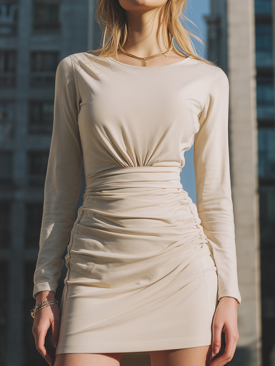 Ruched Long-Sleeve Bodycon Mini Dress