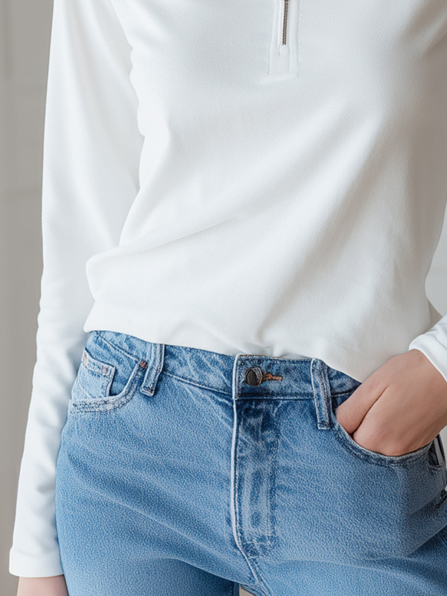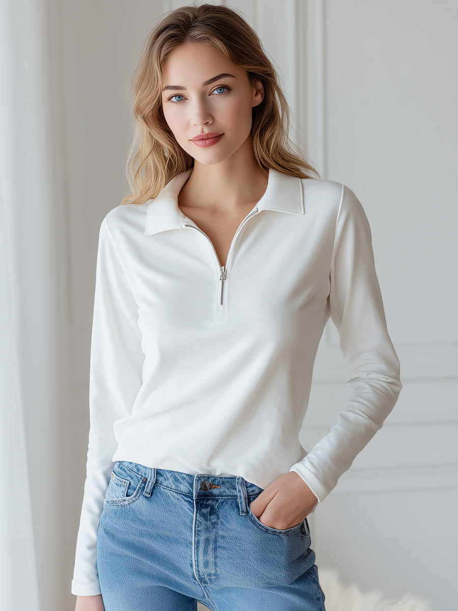 Soft Touch Half-Zip Polo Long Sleeve Top