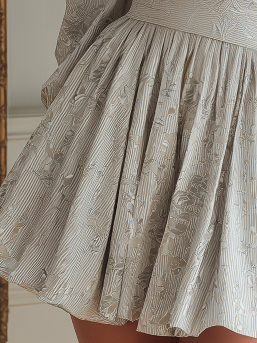 Pleated Jacquard Mini Dress With Structured Waist