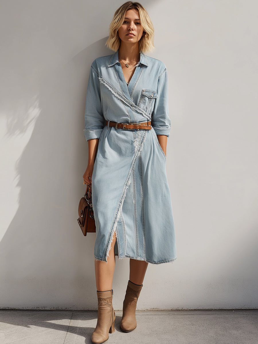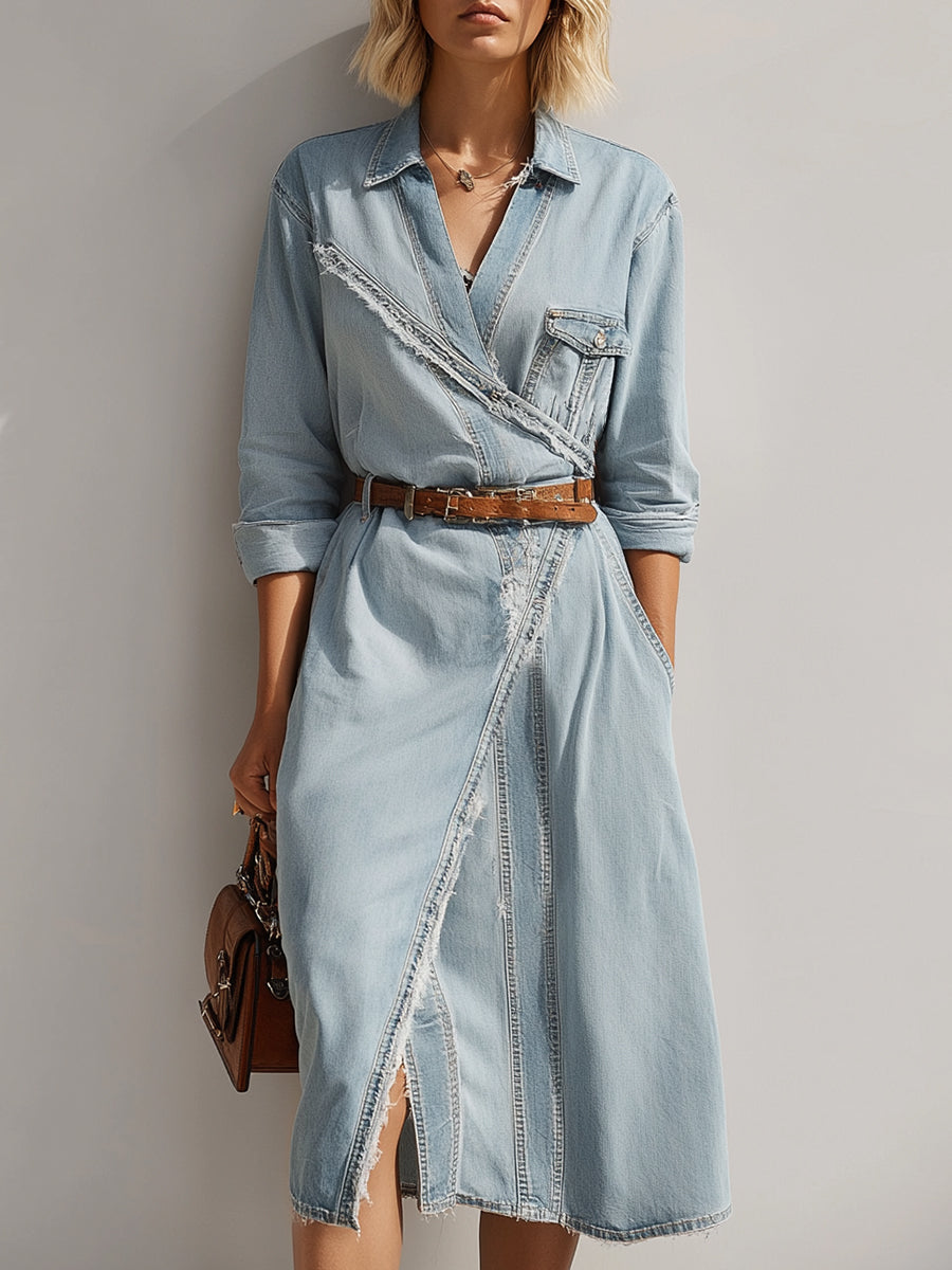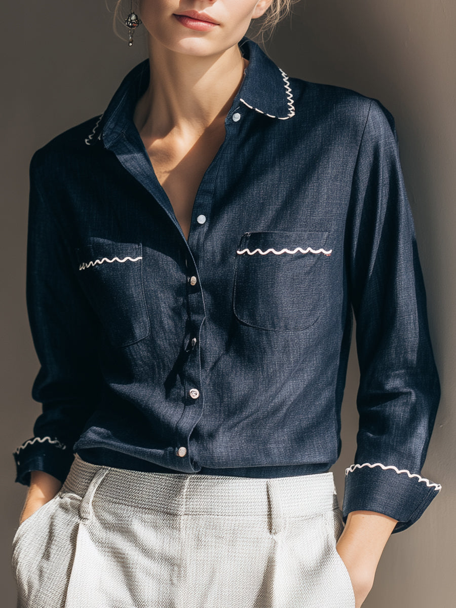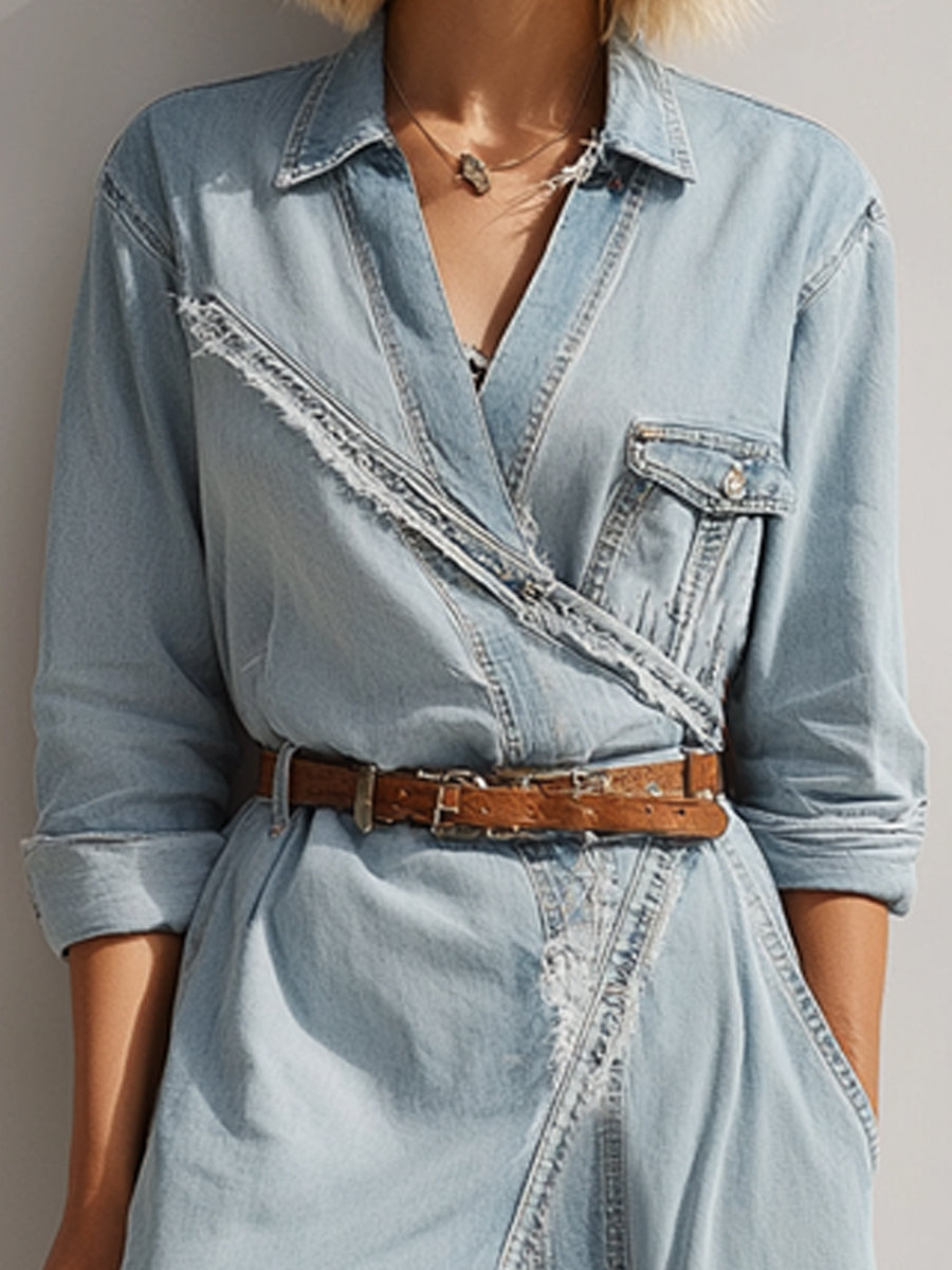 Classic Collared Denim Shirt With Subtle Frayed Edging