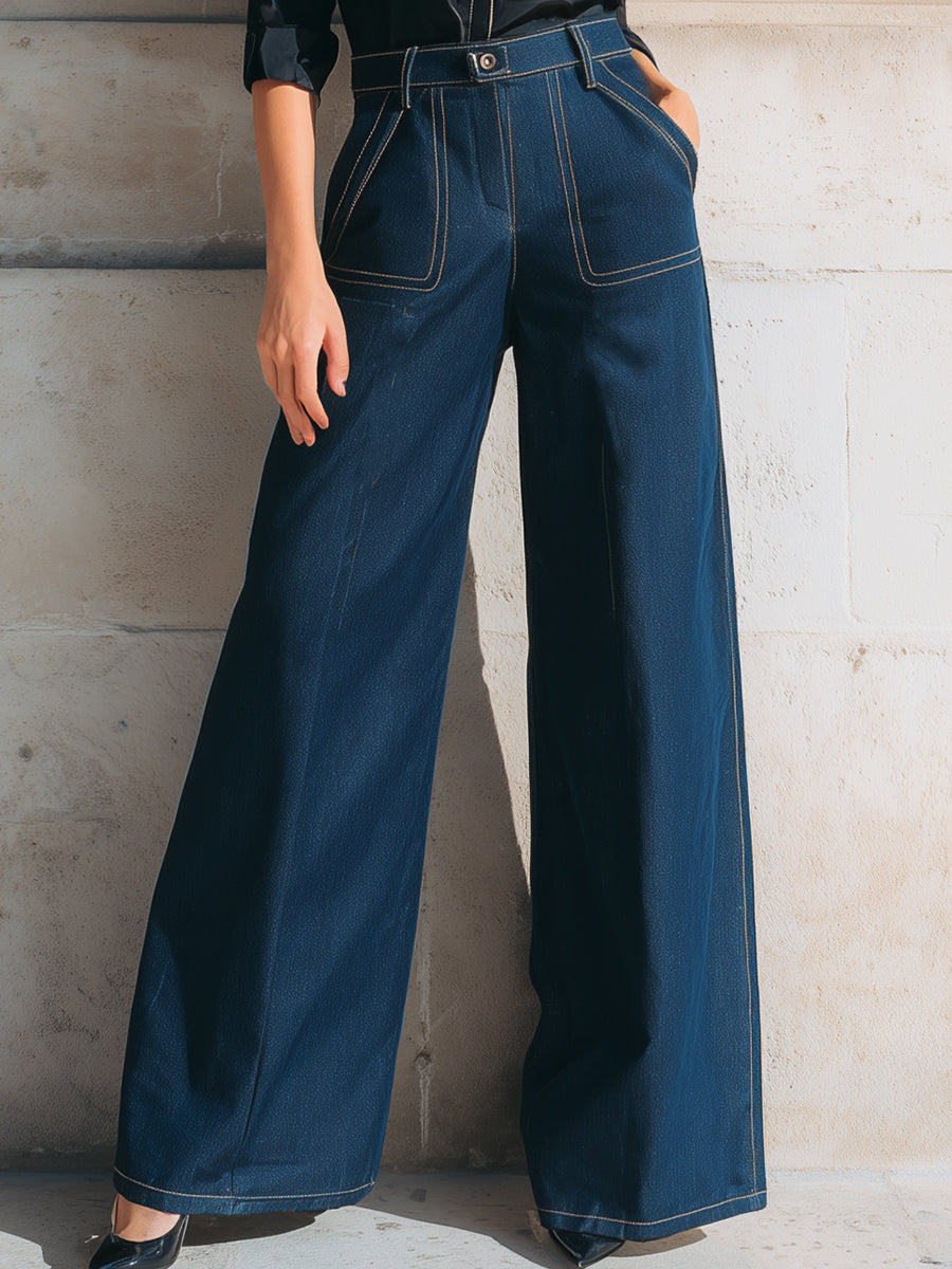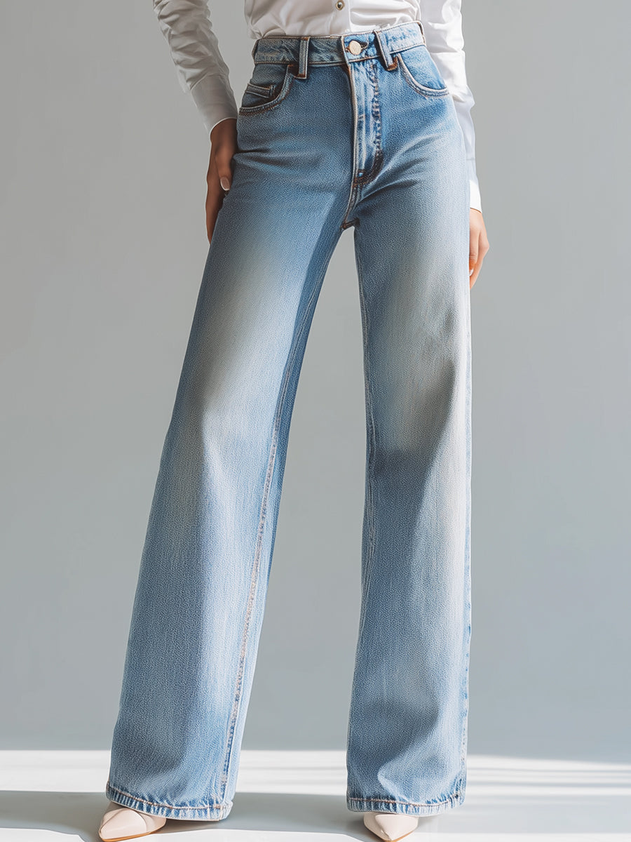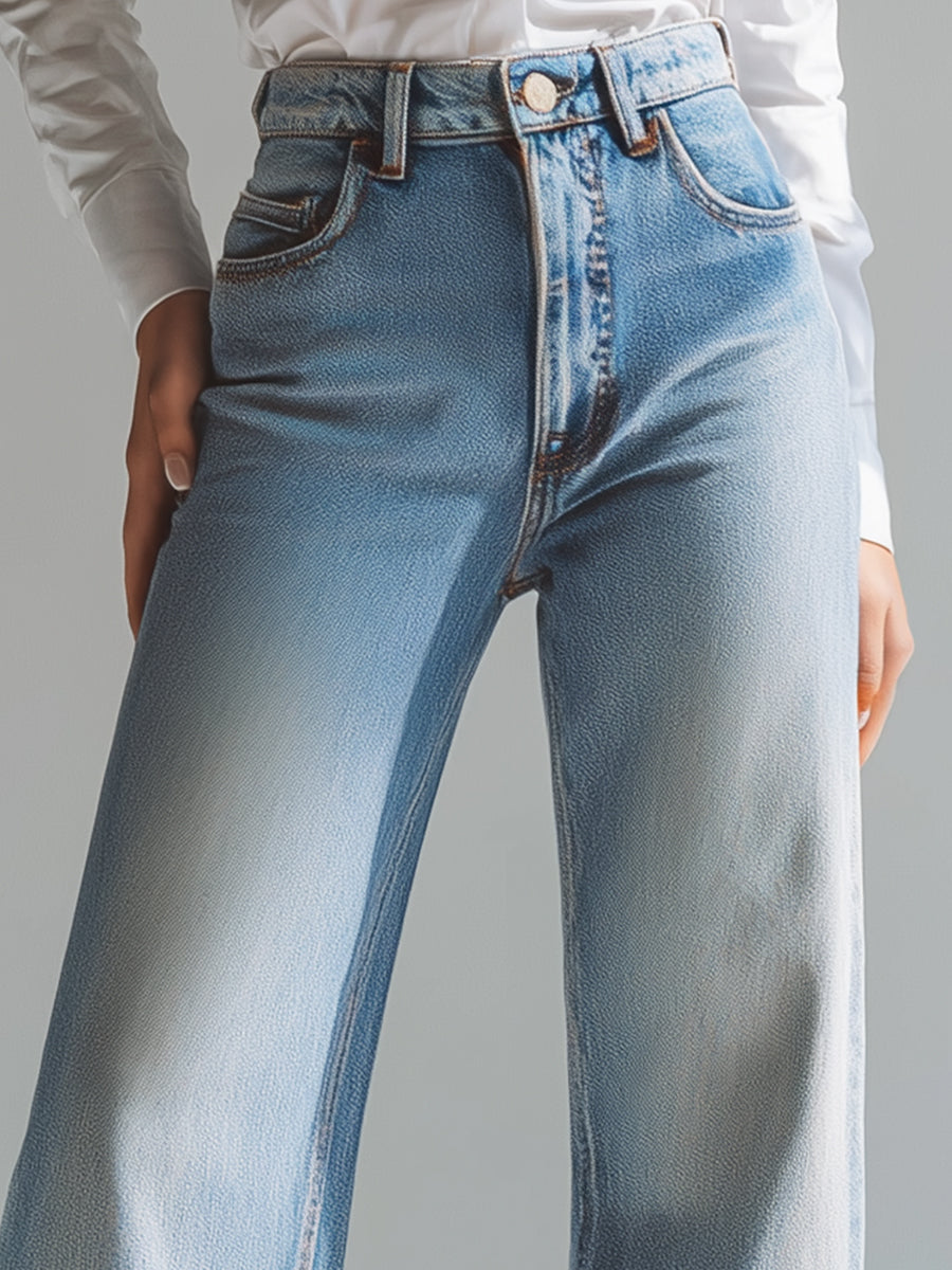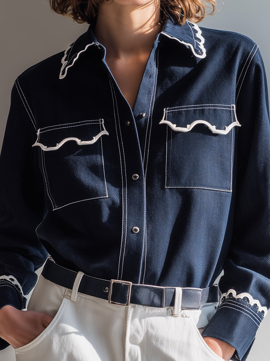 Classic Collared Denim Shirt With Subtle Frayed Edging
