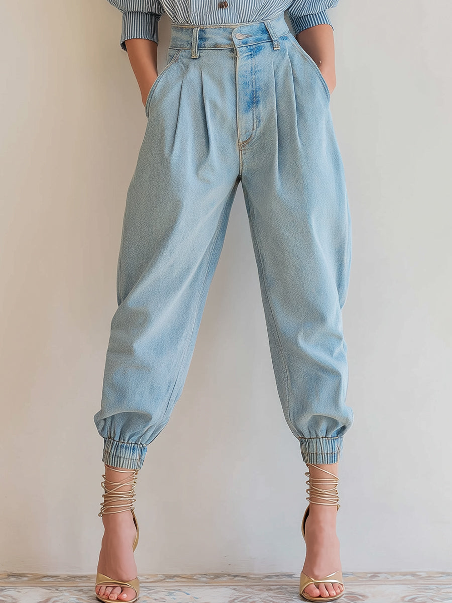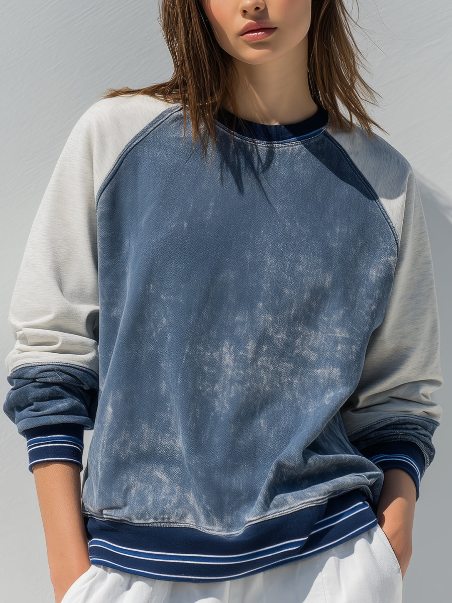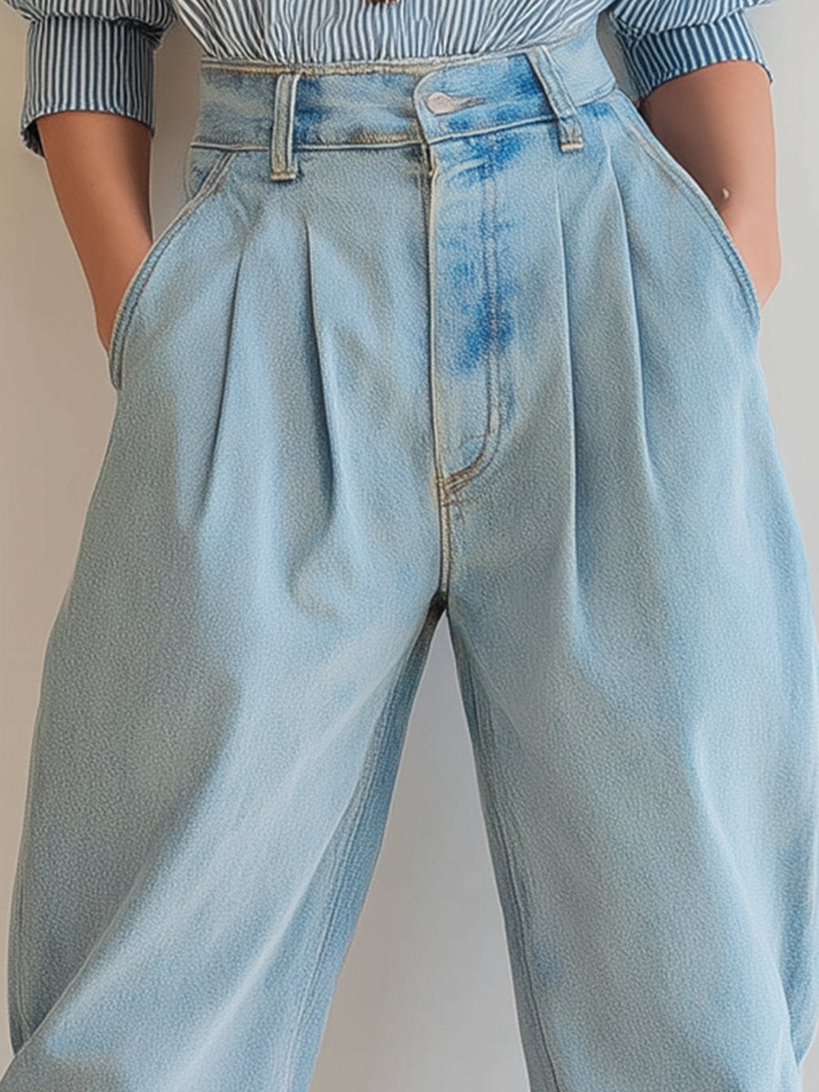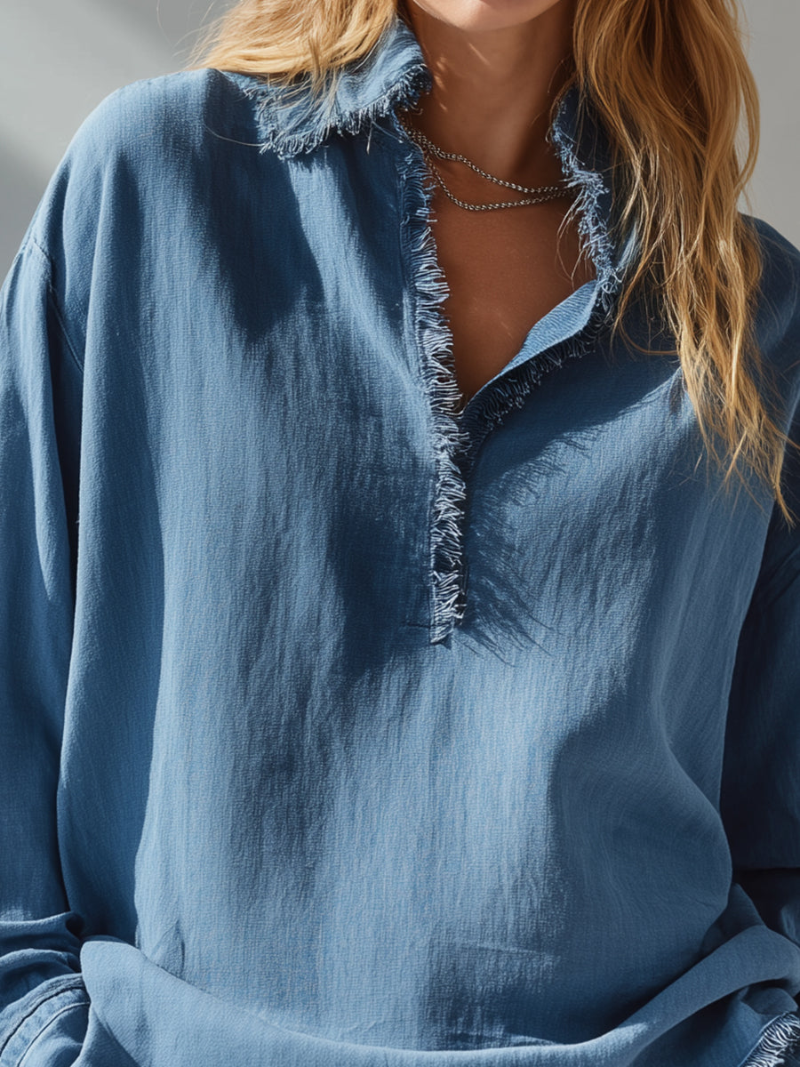 Relaxed Fit Denim Top With Modern Frayed Accents