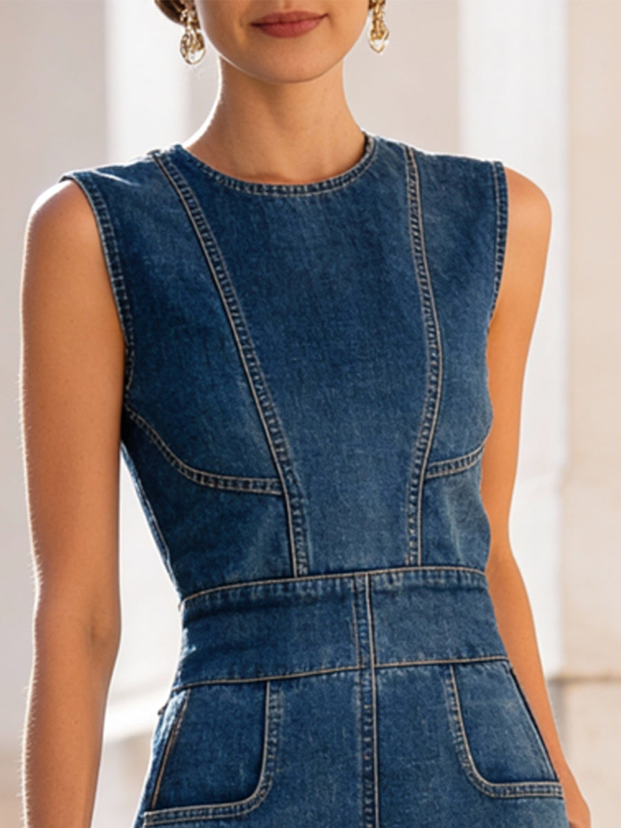 Crovaya Structured Denim Sleeveless Midi Dress