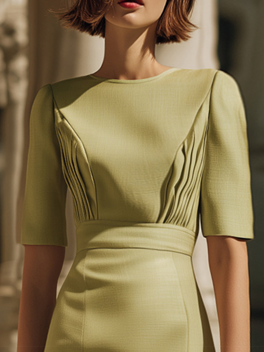 Crovaya Sculpted Pleat-Detail Mid-Sleeve Sheath Dress