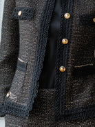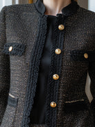 Black Lace-Trim Tweed Blazer With Gold Buttons