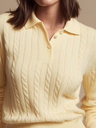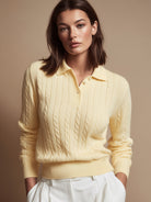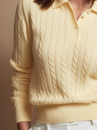 Crovaya introduces the Butter Yellow Cable-Knit Polo Sweater — a delicate fusion of classic preppy charm and modern sophistication. The soft cable-knit texture and subtle pastel tone evoke warmth and elegance, while the polo collar and buttoned neckline lend timeless appeal. This sweater transitions seamlessly between smart-casual and refined everyday looks, embodying Crovaya’s effortless approach to style.
