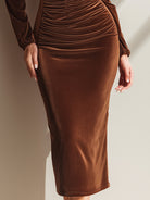 Cocoa Velvet Ruched Long-Sleeve Bodycon Midi Dress