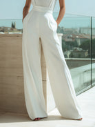Crovaya presents a refined two-piece ensemble that embodies architectural elegance and contemporary femininity. This coordinated set pairs a high-neck pleated top with impeccably tailored wide-leg trousers, achieving a balanced silhouette that is both commanding and fluid. Designed for the woman who values sophistication with a modern edge, the ensemble transitions effortlessly from elevated daytime engagements to evening occasions.