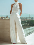 - Design: Two-piece set featuring a high-neck pleated sleeveless top and tailored wide-leg trousers