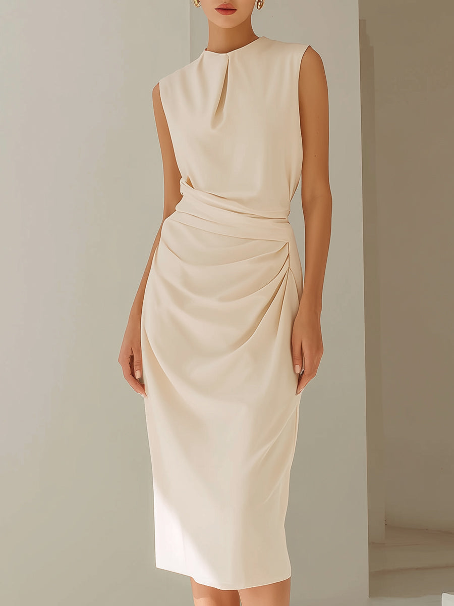 Draped Sleeveless Midi Dress With Sculpted Waist