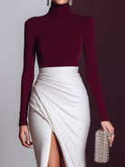 High-Neck Long-Sleeve Bodysuit And Crystal-Detail Draped Skirt Set