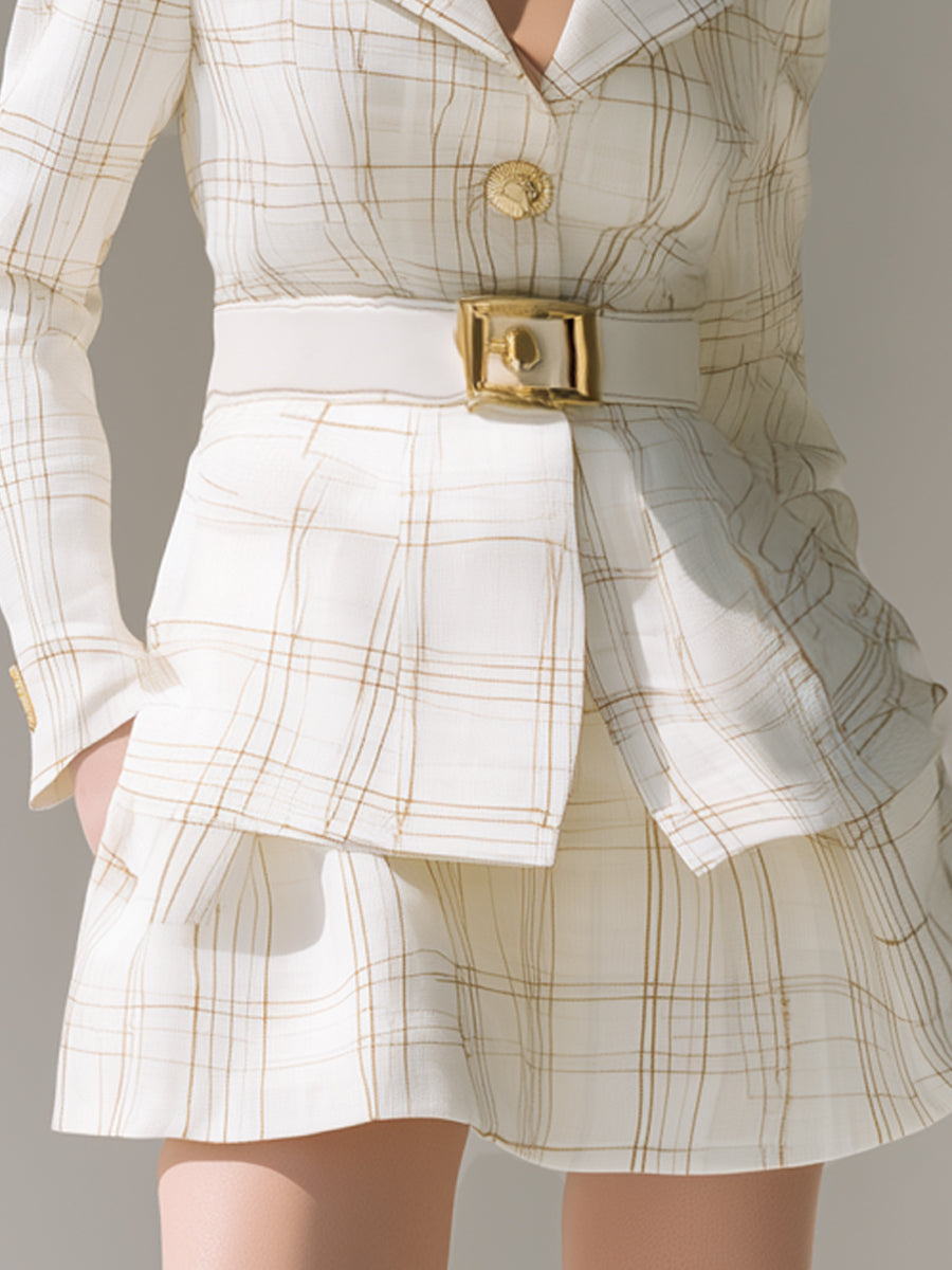 Ivory Checked Belted Skirt Set
