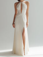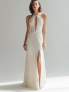 Ivory Keyhole Halter Gown With Front Slit