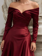 Off-Shoulder Long-Sleeve Midi Dress With Draped Bodice