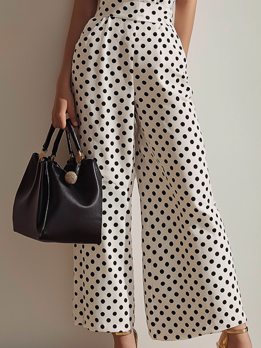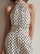 Chic, playful, and effortlessly refined, the Polka Dot Halter Wide-Leg Jumpsuit with Pleated Bodice reimagines classic retro style with a polished contemporary twist. Crafted for women who love clean sophistication mixed with artistic charm, this design is perfect for daytime elegance, resort outings, brunch dates, and summer events.