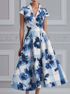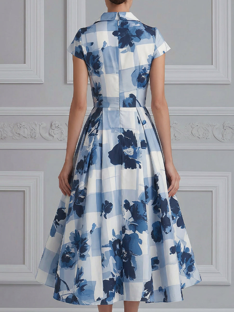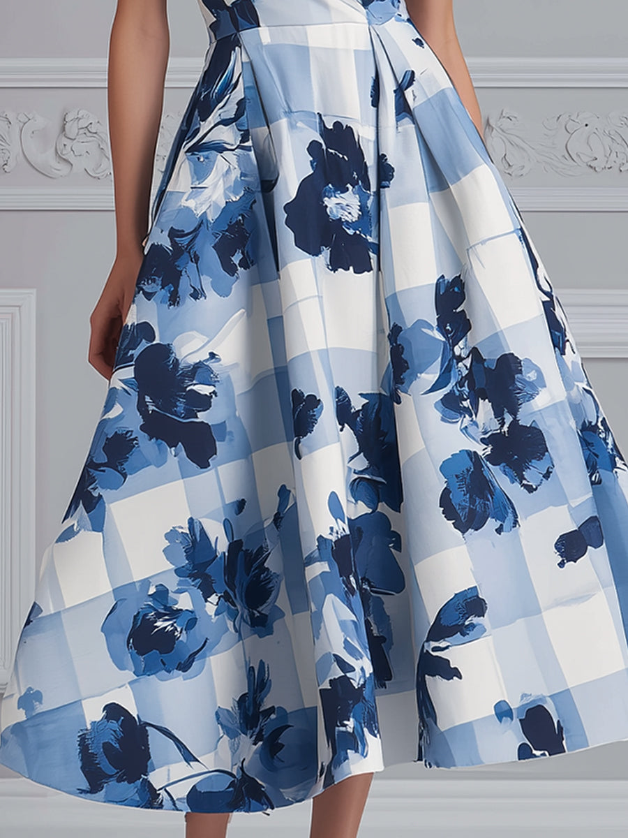 Elevate your wardrobe with this elegant A-line midi dress, designed to combine modern artistry with timeless femininity. The structured bodice creates a refined upper silhouette, offering a flattering fit that enhances natural proportions. A clean neckline keeps the look polished while allowing the print to stand out. The waist is gently defined, transitioning into a flowing A-line skirt that creates graceful movement and an elongated profile. The volume of the skirt adds a soft and romantic touch, ensuring both comfort and elegance with every step.