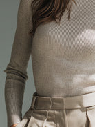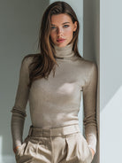 Attention to detail is evident in its streamlined fit and delicate ribbed texture, which elongates the figure and adds subtle depth. Paired with high-waist trousers or pencil skirts, the top conveys understated confidence and composure, perfect for women with discerning taste. It is not only an ideal layering piece for fall and winter but also a year-round staple for transitional weather.